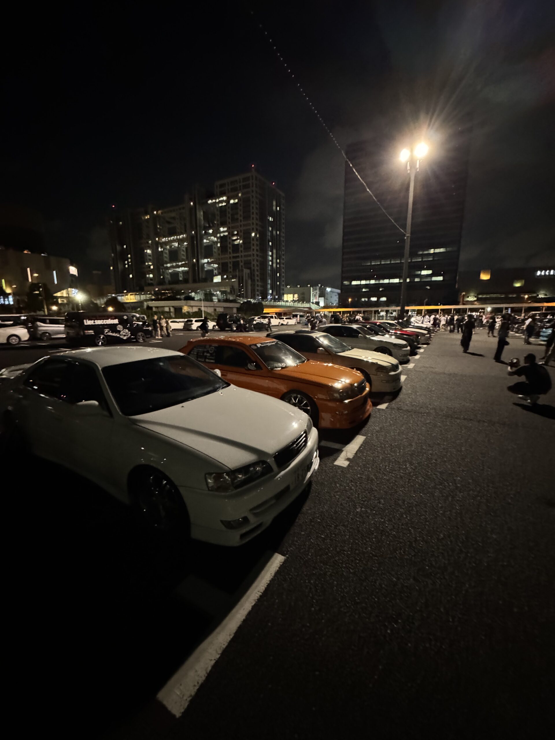 The meets lean toward street culture — similar in spirit to Shibuya Carjack, but with a waterfront setting and a more organized structure. On a strong night, 50+ cars show up. Police presence exists, however as long as nobody is causing trouble, enforcement stays relaxed.